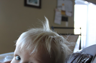 Remember that time when my husband tried to cut his hair with a Flowbee? And after that he said he'd sell it on Craig's List? Turns out that not many people are in the market for a Flowbee. Go figure. So, when it came time for Johnny to get his hair cut again, we were faced with a dilemma: shell out another $25 for a hair cut or do it at home. Well, seeing as we aren't interested in getting his hair cut for $25 a pop every time his hair gets shaggy, we decided to try our luck at home. I grabbed some scissors, John grabbed Johnny's head and we got started.